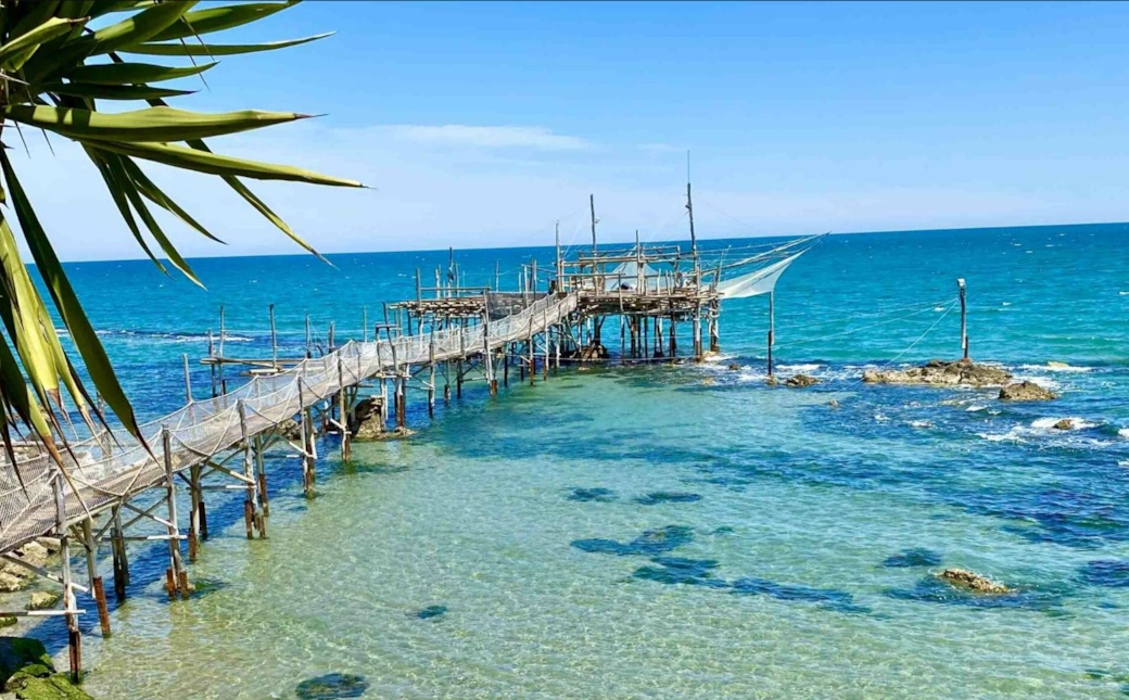 The coastline near Casale Orgogliosa offers a rare balance of accessibility and wild beauty. Pebble coves, wooden trabocchi suspended above the sea, and long stretches of open water define this part of Abruzzo.